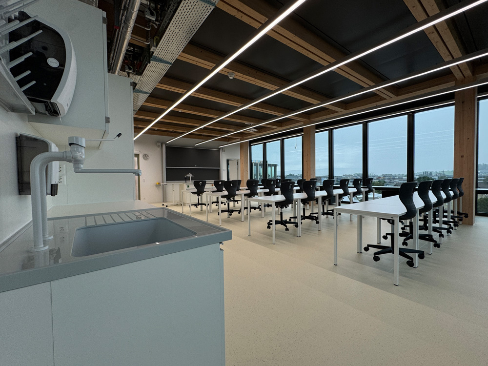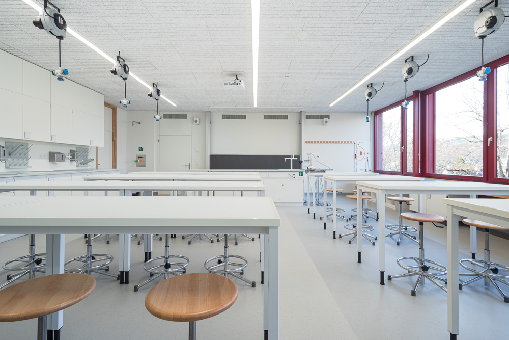 Laboratoires scolaires, sorbonnes, hotte traversante, armoires de sécurité, éviers, armoires