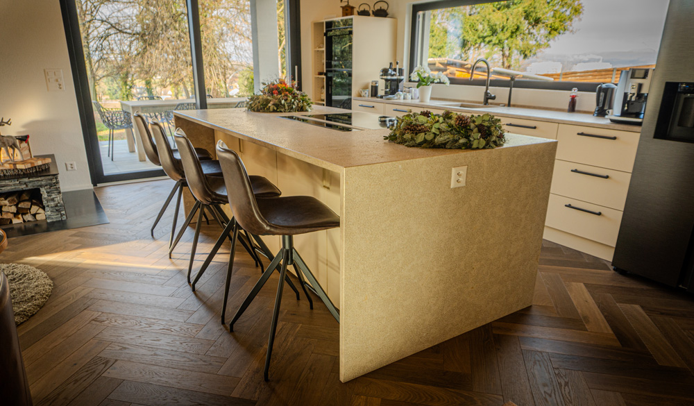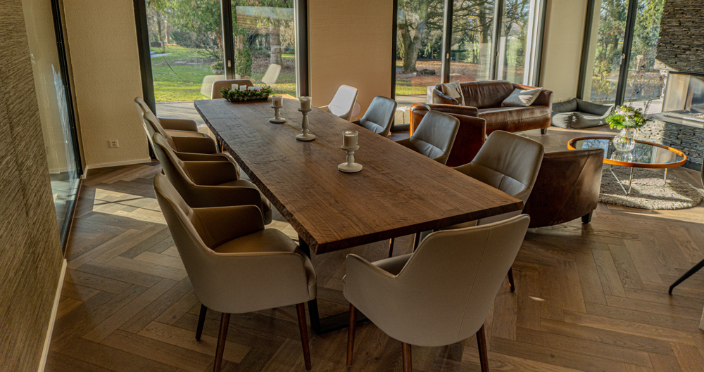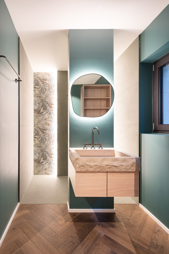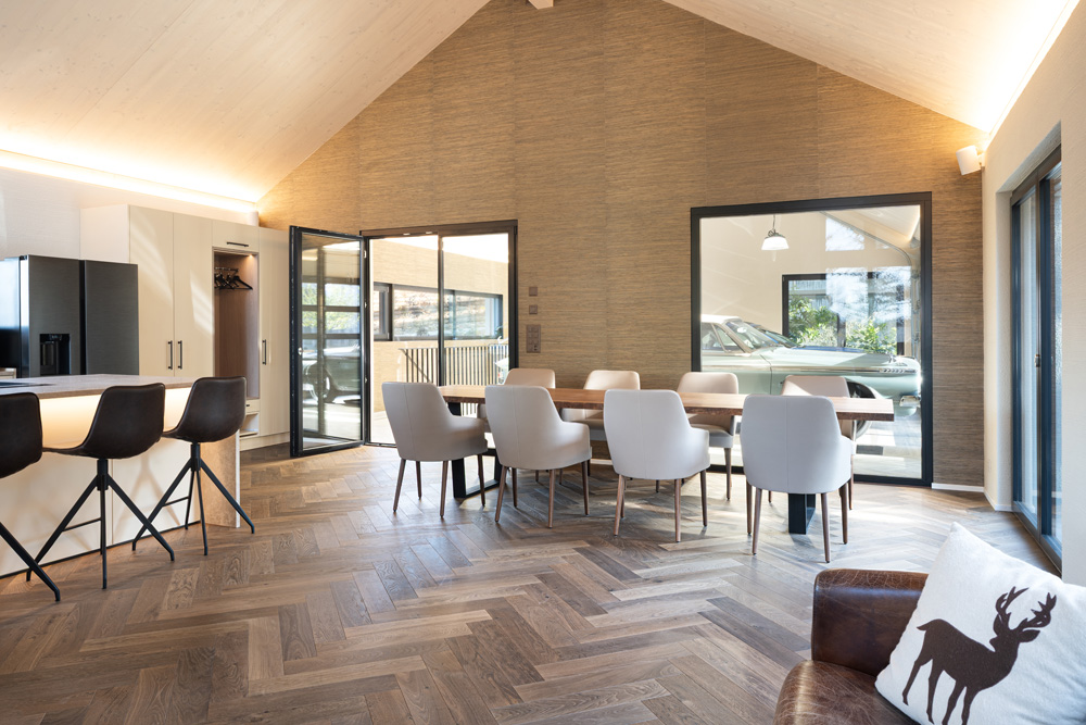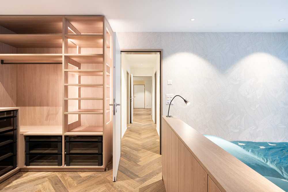 Cuisine, cave à vin walk-in, dressing walk-in, table à manger, vestiaire, meubles de salle de bain
